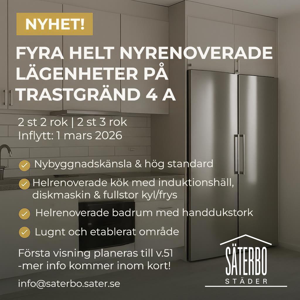 Fyra helt nyrenoverade lägenheter på Trastgränd 4 A
